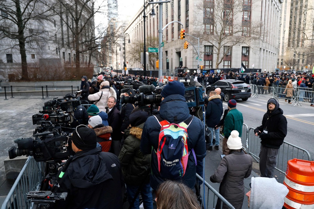 1月5日,美国纽约,媒体记者聚集在联邦法院前。