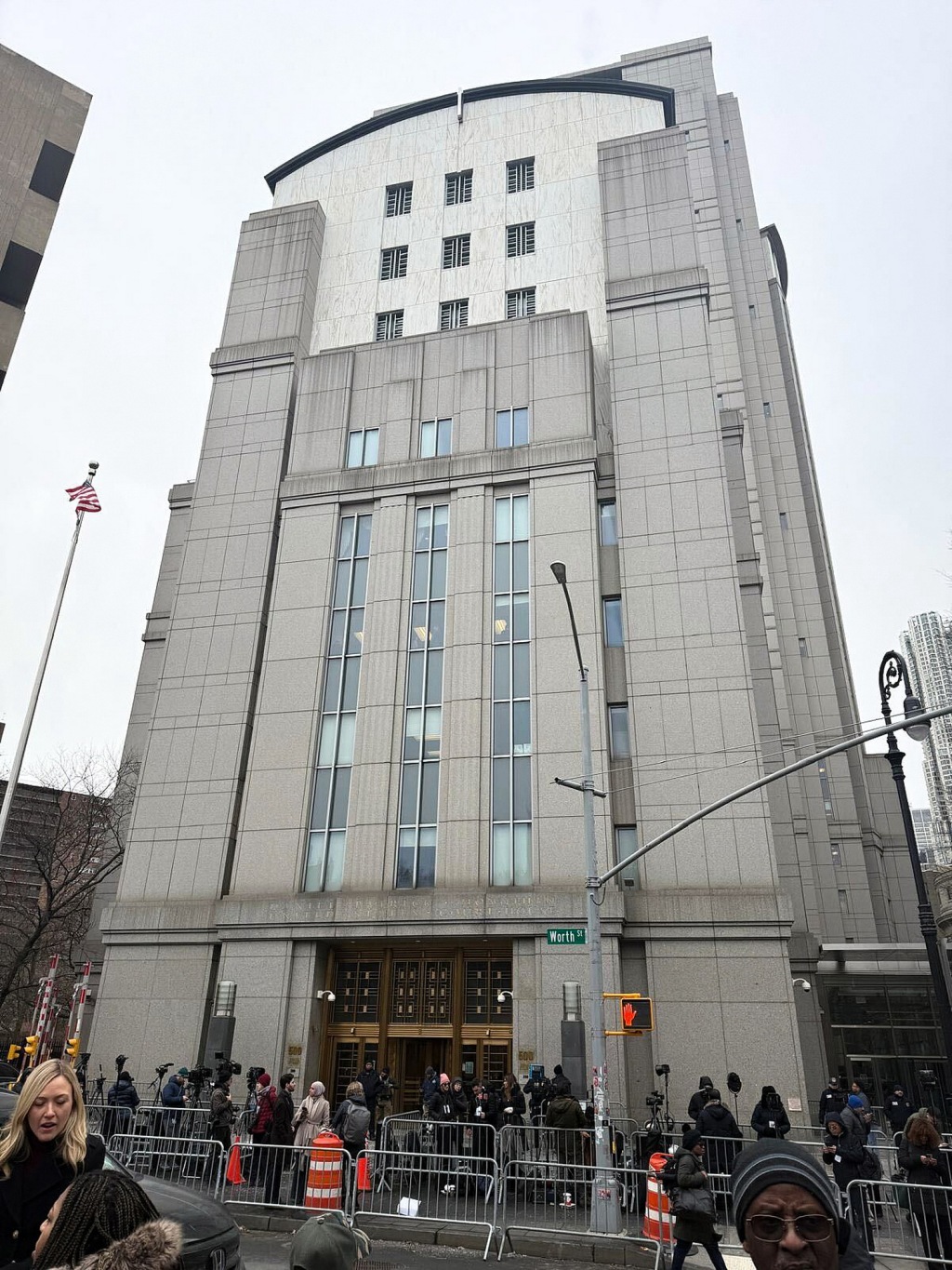 在当天庭审开始前,美国纽约南区联邦地区法院外已聚集大批民众,现场气氛紧张。