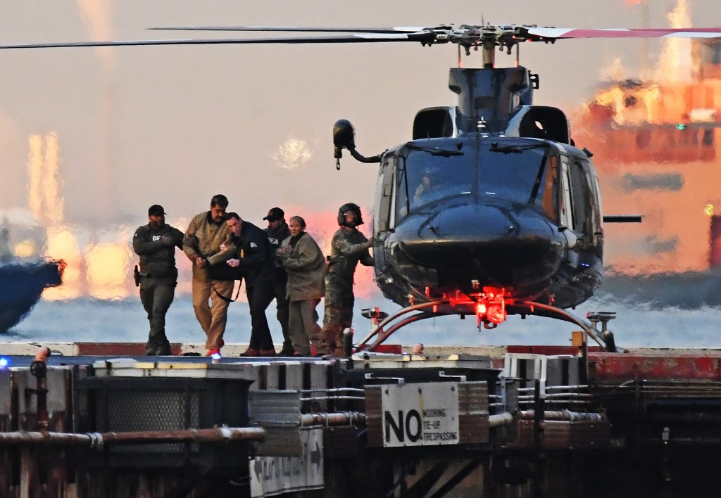 1月5日,美国纽约,委内瑞拉总统马杜罗及妻子被美国特工通过直升机带到曼哈顿下城。视觉中国 图