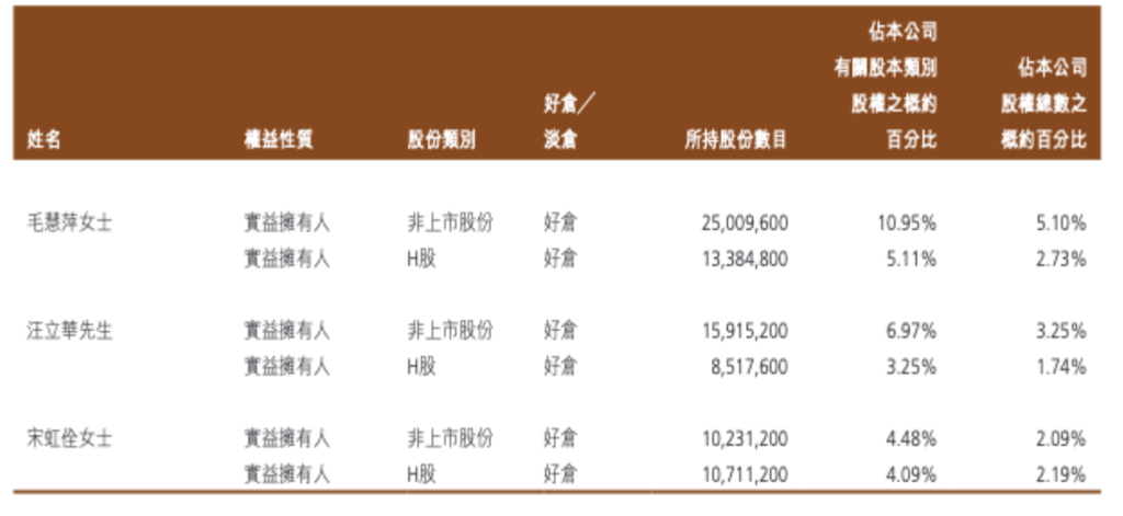 据此前年报显示,上述股东中汪立群为毛戈平的配偶,毛霓萍和毛慧萍为毛戈平的姐姐,汪立华为汪立群的弟弟。宋虹佺是毛戈平公司的核心高管,担任执行董事、公司总裁、同时兼任MAOGEPING品牌事业部总经理。上述六人均为公司执行董事。