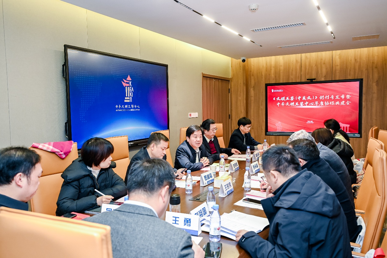 1月5日,《文明互鉴(中英文)》创刊号发布暨中希文明互鉴中心年度协作共建会在西南大学举行。来自教育部、中联部、中国社会科学院、重庆市委宣传部、重庆市教委,以及清华大学、北京大学、北京师范大学和中方四校等单位的有关负责同志和专家学者出席会议。会议发布了《文明互鉴(中英文)》创刊号,研究部署了中方四校2026年度协作共建工作,标志着中希文明互鉴中心在新的一年开启了系统推进学术平台建设和协作机制创新、深入落实“全球文明倡议”的新征程。