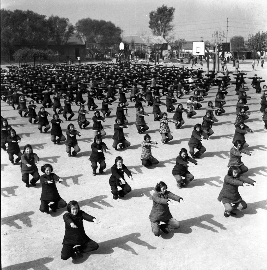 徐州一中学生课间广播操,1959年。晓庄 作品