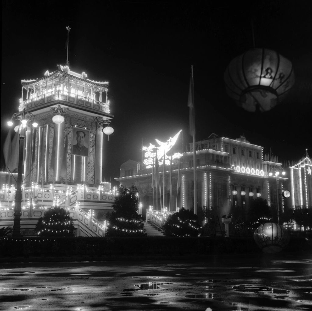 晓庄的创作高峰集中在1950-1970年代,主要是南京与南通两地的城市及周边农村风光与工业建设成果。1970-1980年代作品数量大大缩小,这和她与家人一起被下放南通有关。这些年代恰恰也是整个中国变革最为激烈的历史时期。置身于这样一场运动中,摄影记者变成了一种特殊的社会与政治身份,赋予了她别样地看待世界并抽身而出的方式——拥有相机在那时本就是一种文化特权,并延伸至我们现在所说的“日常生活的政治”之中。从国家领导人或是印尼苏加诺等外国政要的宴请,到五台山体育场上攒动的红旗与标语;从面对街头意气风发的高校师生,到指挥土墙边腼腆的农民代表摆拍,她必须学会用镜头面对现实极大的差异与动荡。不过正是由于摄影这一行为某种程度上将她与世界总是隔了一层东西,那些她对现实、理想,记录、虚构等观念的理解才得以在那个年代隐晦却自然地留存,并获得表达的空间。