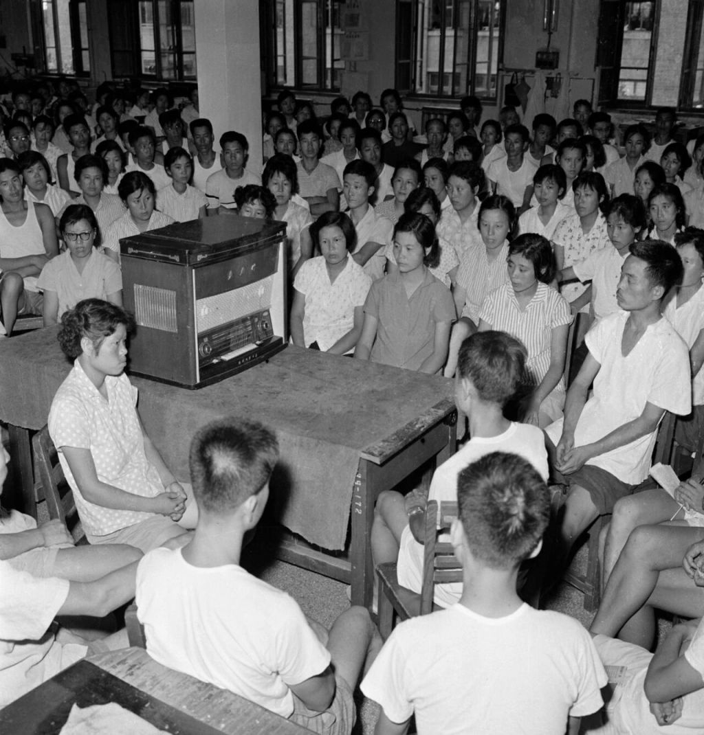 南京无线电厂工人收听广播,1966年8月。晓庄 作品
