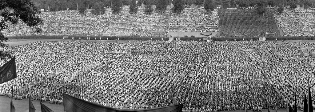 南京市五台山体育场反美援越大会,1966年。晓庄 作品