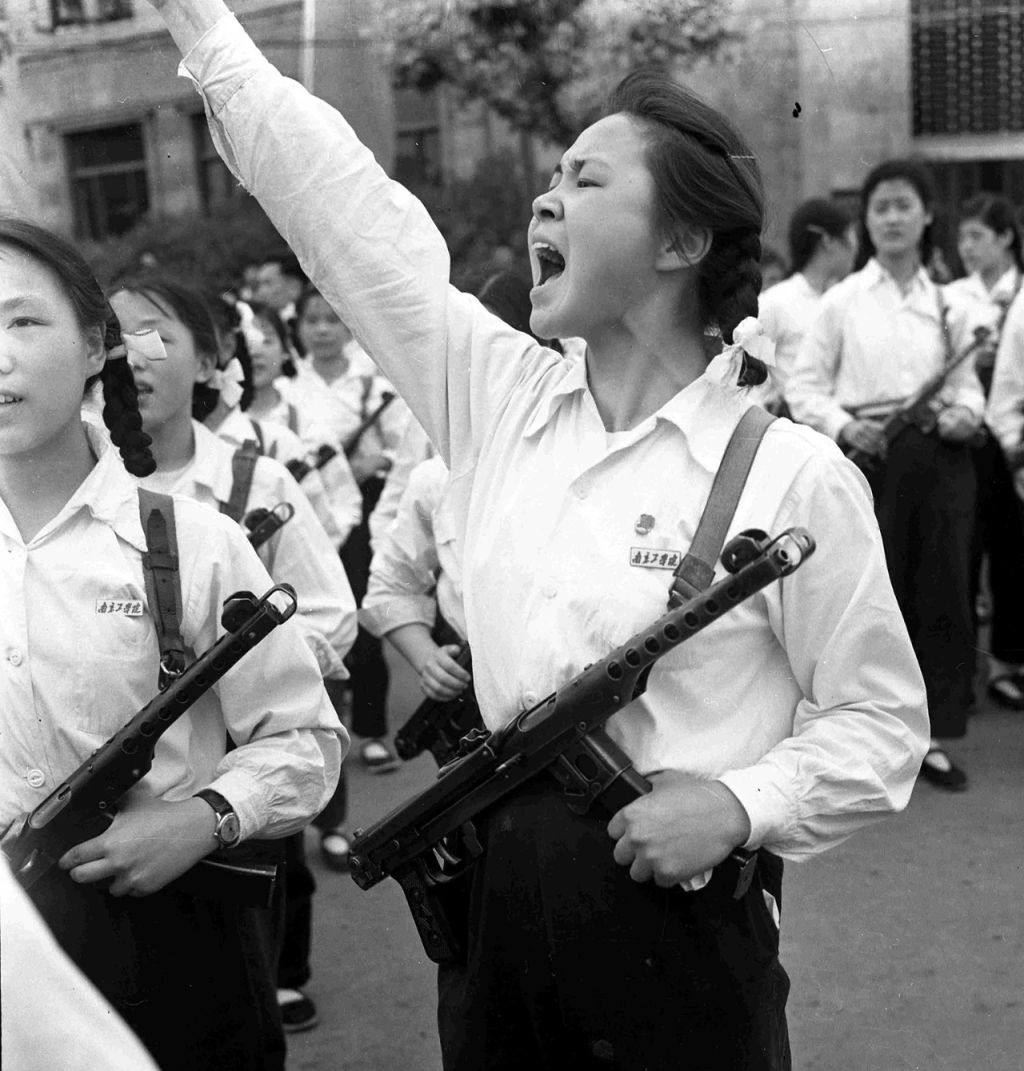 高呼反美口号的南京工学院女民兵,1960年。晓庄 作品