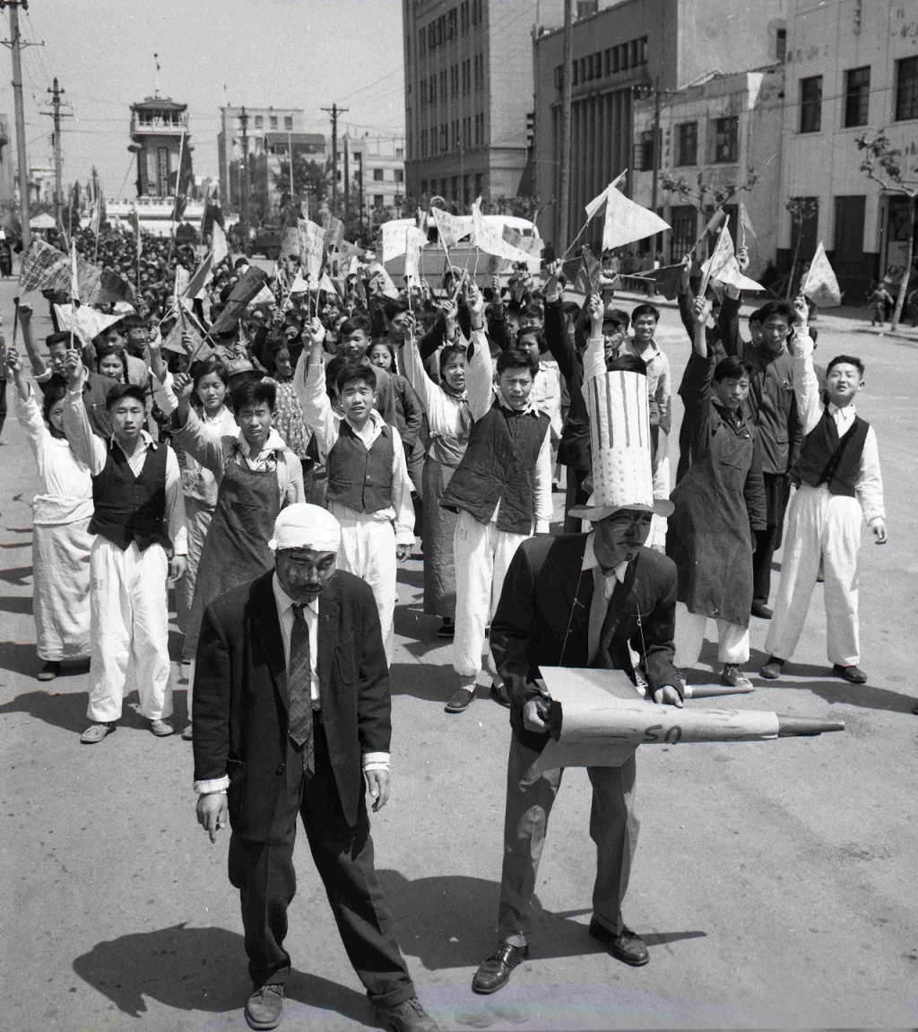 后来好几次与老太太一同翻看照片印证了我的判断,她总会笑嘻嘻地给我挑些“废片”加以评论。诸如片中人物“睁一只眼,闭一只眼”的画面。这些照片往往由于画面的不完美,传递不出高大的“典型性”,达不到当时的发稿要求。我想老太太这般玩味实有她对现实与历史的判断态度隐含其中。当时的她当然不曾听说所谓“决定性瞬间”“观念摄影”之类的概念,但也丝毫不影响她对现实-政治-影像连接与互相作用之时,最为朴实与直接的感知:对瞬间的操控即可以塑造历史,直指人心。
