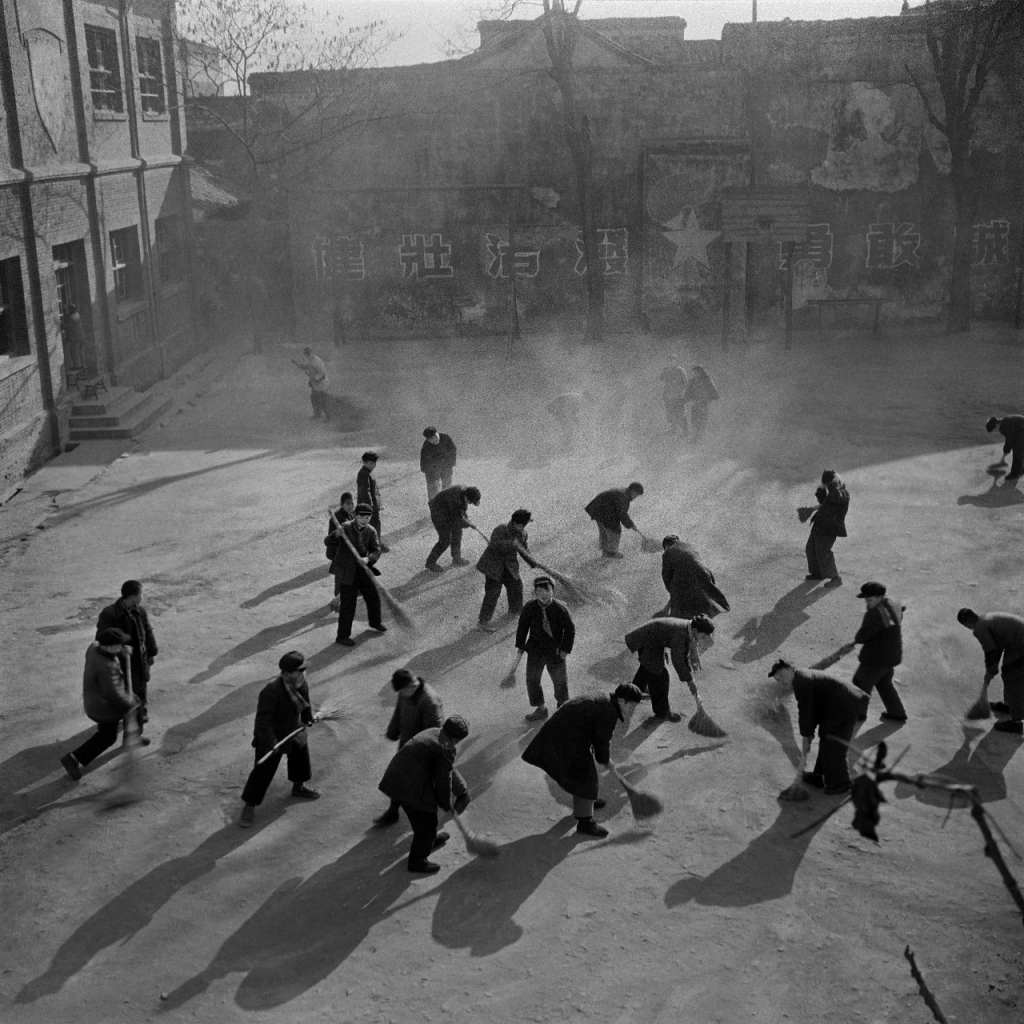 爱国卫生运动中,南京市评事街小学生假日回校大扫除,1954年。晓庄 作品