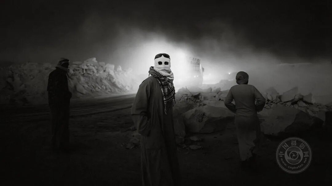“太阳升起之前,世界苏醒之前,采石场早已一片繁忙。”明亚的石灰岩采石场坐落于埃及中部的尼罗河沿岸,为建筑行业供应砖块。工人们在现场切割、打磨石灰岩,在恶劣环境中使用无防护的机械作业。危险的锯片将石头切割成规格统一的砖块,随后被装上卡车运往全国各地。空气中弥漫着粉尘,万物皆被白色覆盖——这个环境既危险又极具视觉冲击力。我是通过朋友卡里姆的一组照片发现这个采石场的,他的作品以电影般的美感深深吸引了我。强烈的对比、粉尘弥漫的空气、幽灵般的剪影——一切都如同幻境。出于好奇,我联系了他。数月后,我来到这里,在漆黑的清晨抵达,泛光灯穿透粉尘,照亮了早已投入工作的模糊身影。