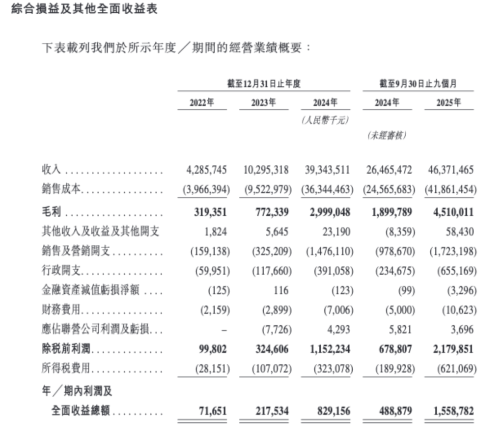 招股书显示,鸣鸣很忙是低毛利、高周转,2022年至2025年前九个月,毛利率由7.5%提升至9.7%,经调整净利率由1.9%提高至3.9%。鸣鸣很忙表示,于2024年及截至2025年9月30日止九个月,两个品牌的毛利率已统一至可比水平。