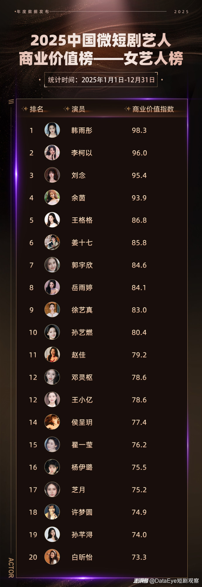 2025年度短剧艺人商业价值榜重磅发布