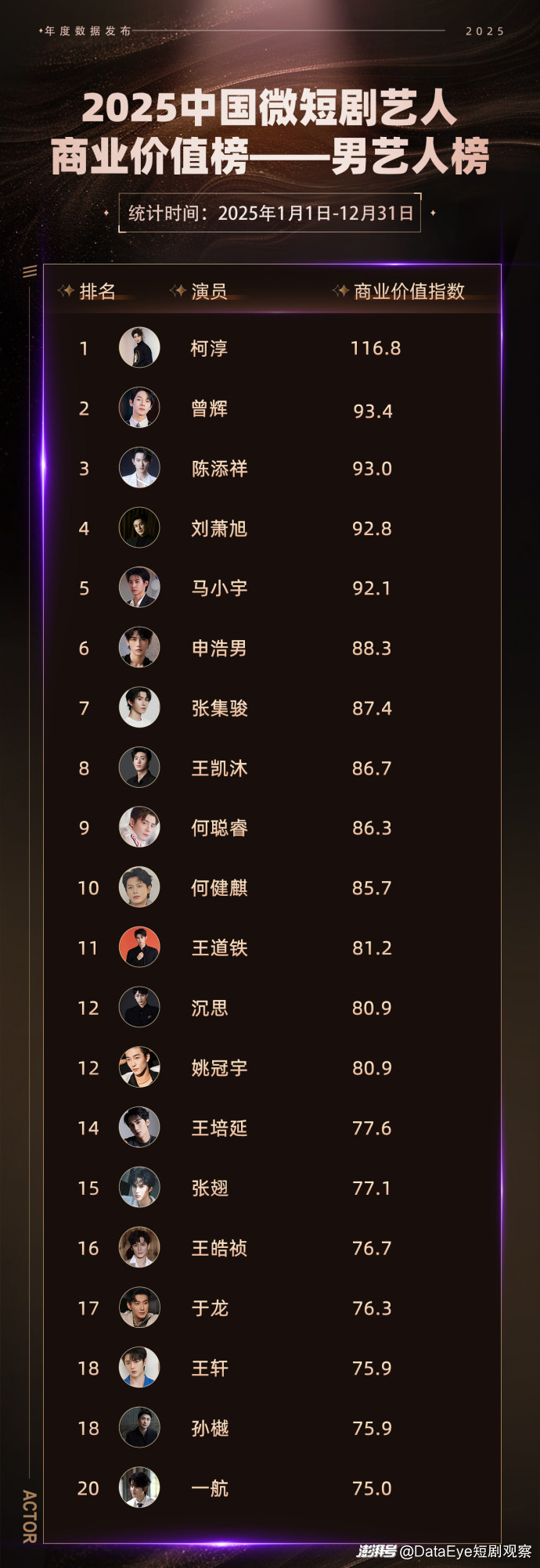 二、2025中国微短剧艺人商业价值榜——男艺人榜