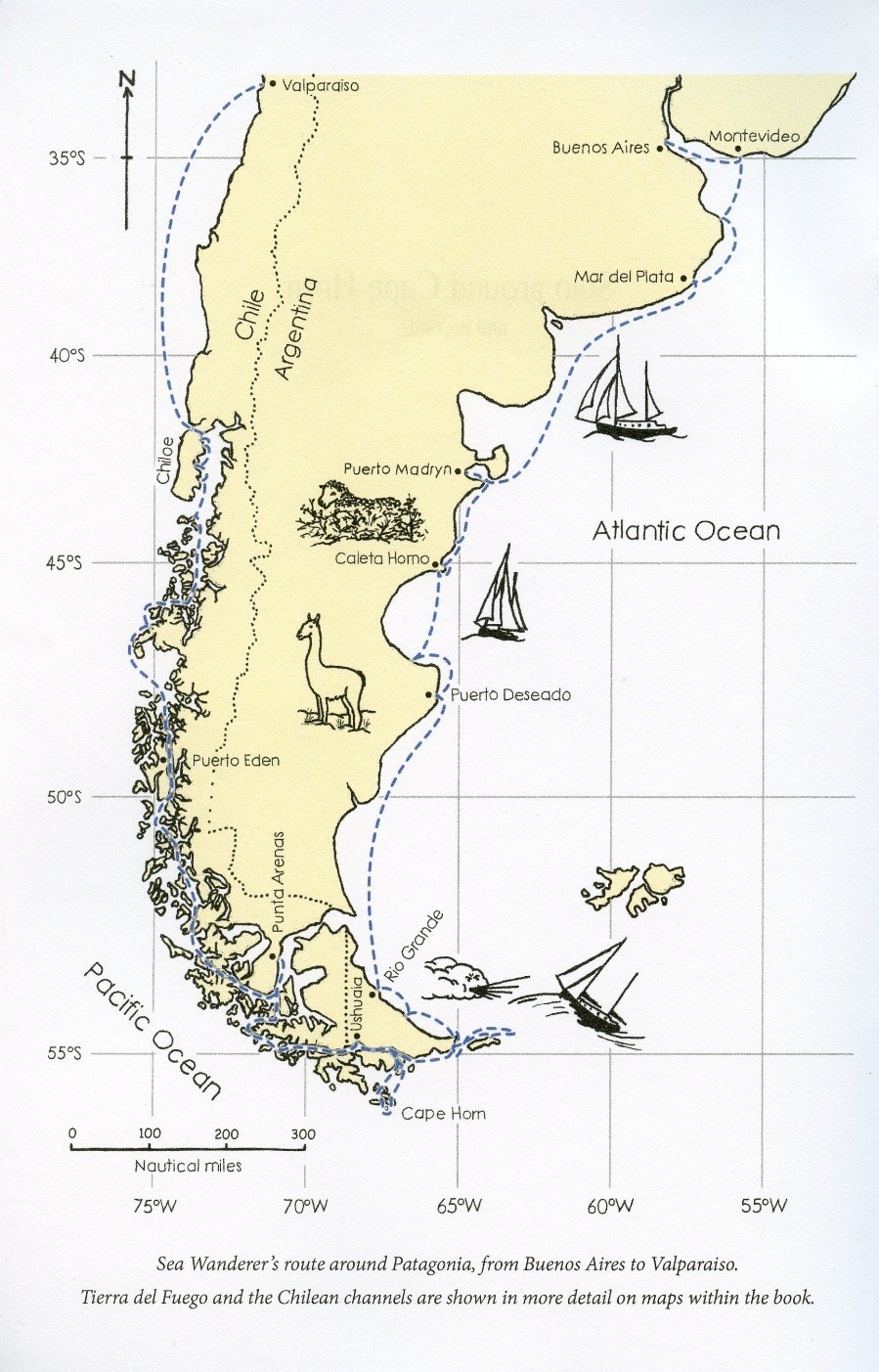 1966年新年前夜,奥尔卡德解开了缆绳:向巴塔哥尼亚和火地岛进发!“海上漫游者”号已为一切做好准备:艏甲板上放着一具重达27公斤的CQR犁形锚,船舱内则安置了两个传统的杆式铁锚,分别重27公斤与45公斤。为了能在火地岛与巴塔哥尼亚岩石密布的岸边系泊,奥尔卡德还购置了长缆绳。甲板上安置了一艘铝制小艇以取代之前的可折叠小艇。而最令他自豪的“锦上添花”之作,无疑是那套经过进一步改进、由他亲自设计并制造的风舵自控系统。