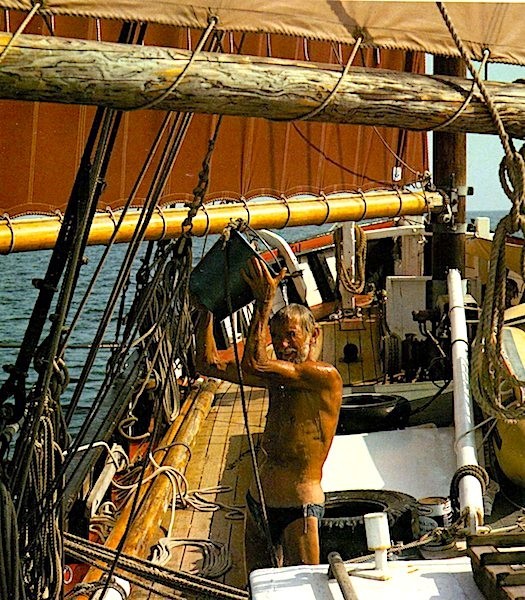 奥尔卡德在“约翰娜·雷吉娜”号上洗冷水澡