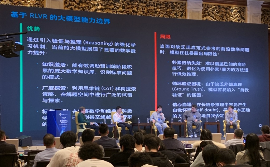1月6日晚,第十届世界华人数学家大会“人工智能与数学”夜话举行,这是大会首次将数学与AI进行同台智慧碰撞。活动由上海市经济和信息化委员会指导,来自清华大学、复旦大学、上海科技大学、上海人工智能实验室等一批杰出的青年数学家与中国最顶尖的AI团队围炉而坐,共同探讨如何用数学的“冷”逻辑去救赎AI的“热”幻觉。