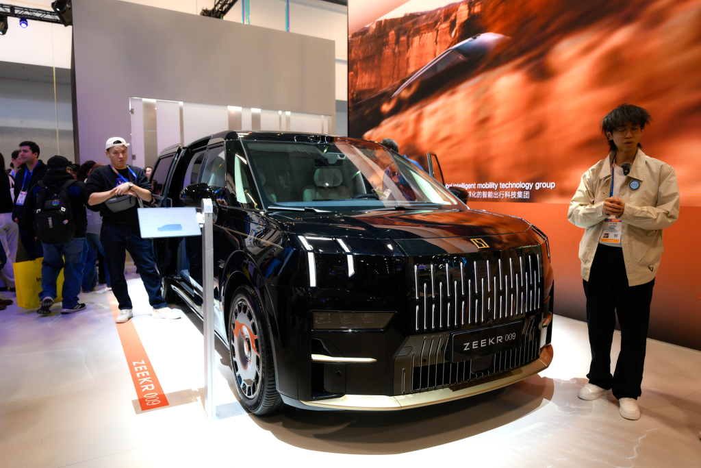 1月6日,在美国拉斯维加斯消费电子展上,一辆极氪009高科技豪华电动汽车亮相。