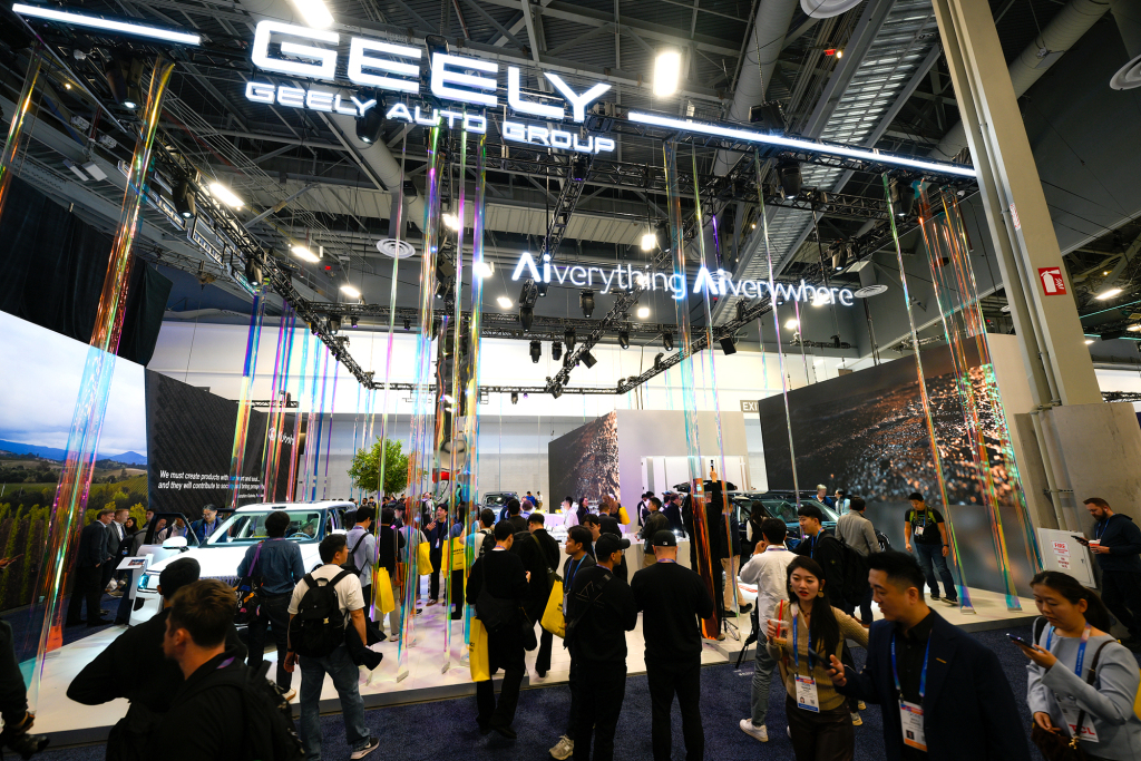 1月6日,在美国拉斯维加斯消费电子展上,人们聚集在吉利展台。