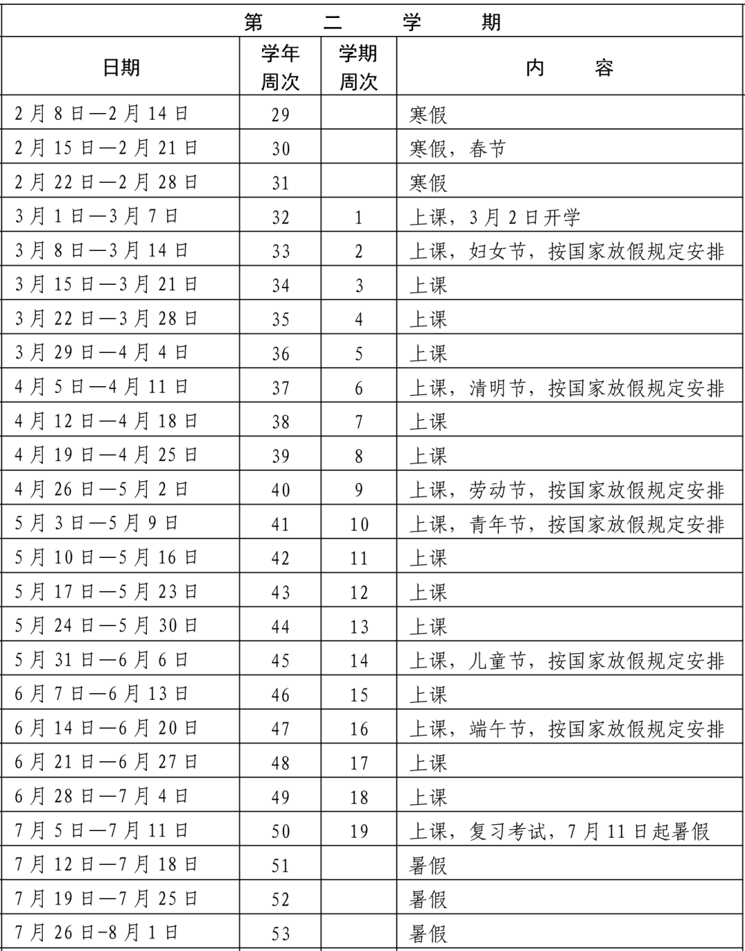 春季学期开学:2026年3月2日