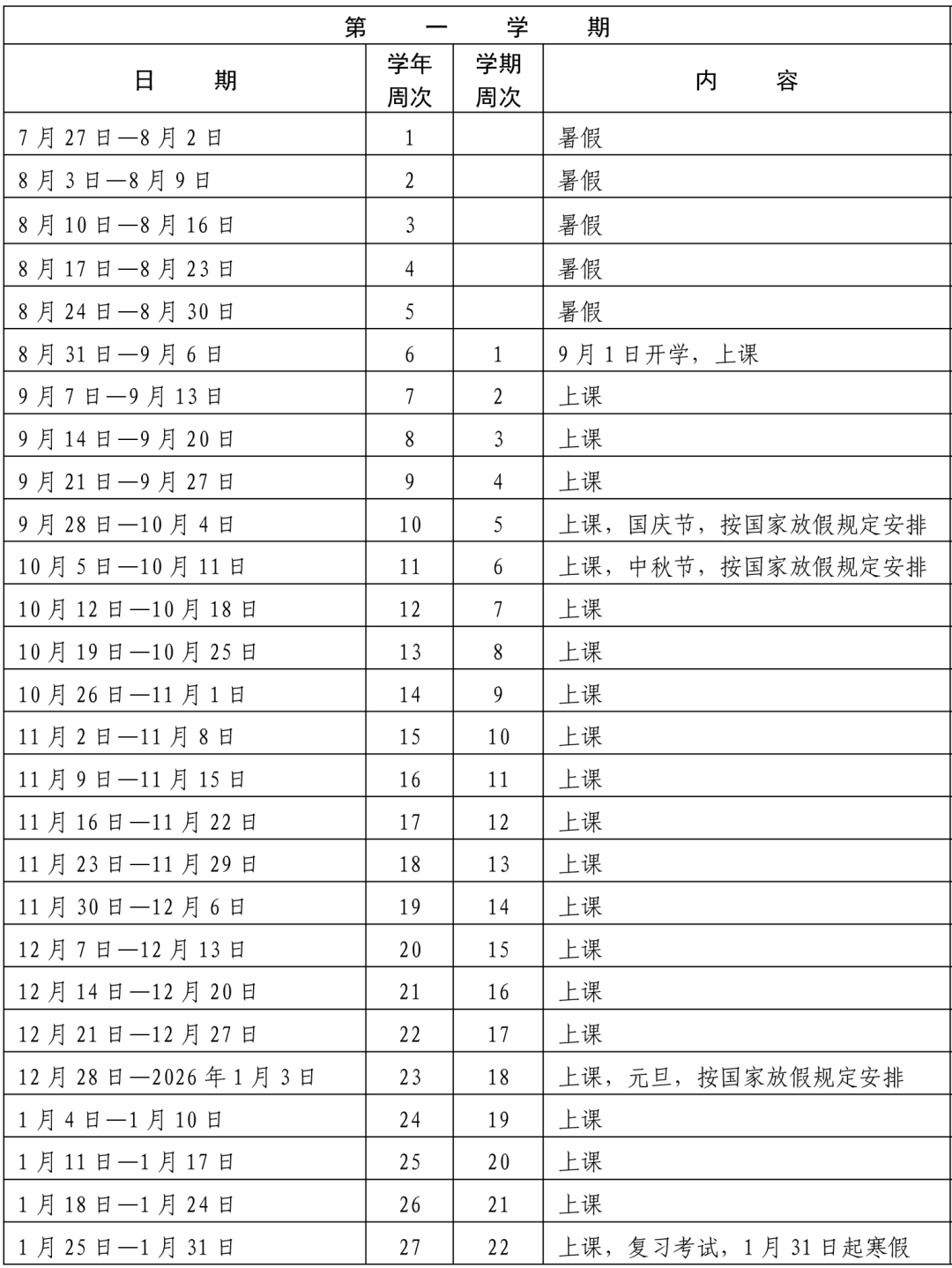暑假开始时间:2026年7月11日