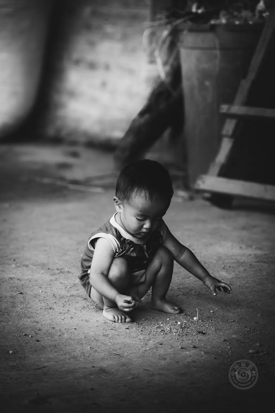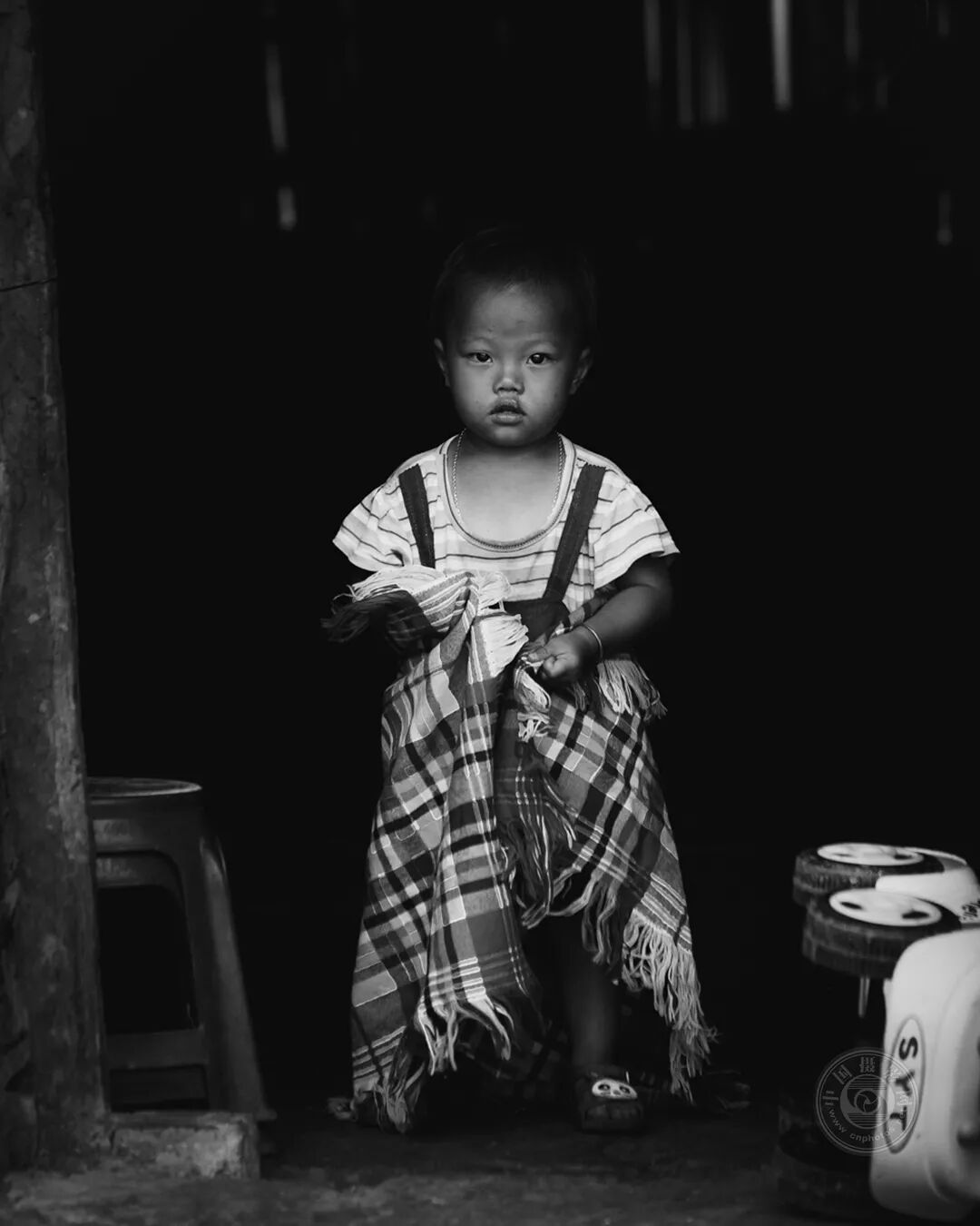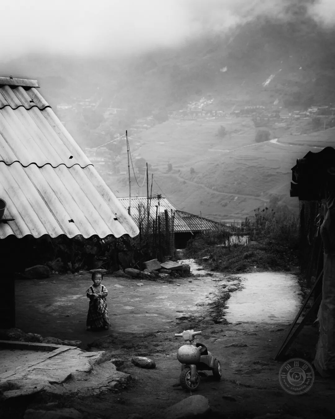 在越南北部的山区,黑苗部落的孩子们成长在一个纯真与日常生活的艰辛并存的世界。通过这组作品,我希望见证他们的现实:童年在泥土小巷、梯田与尘土飞扬的道路(摩托车和卡车穿梭其间)中度过。在那里,他们的漫长课间时光在街头度过,玩耍中夹杂着危险:光着脚在车辆之间奔跑、在稻田边与狗嬉戏、爬上温顺的水牛背。一个旧塑料玩具能成为珍宝,一根简单的棍子就能开启一场冒险。尽管生活贫困,他们的活力依然完好无损,而最令人印象深刻的是他们的眼神——混合着纯真与早熟的成熟。有些眼神闪烁着顽皮,有些则承载着艰难现实的重量。这些照片让观者沉浸在一个一切都脆弱易碎,但每个瞬间都被尽情活在当下的日常生活中。在纯真与坚韧之间,这组作品见证了一段既艰辛又充满诗意的童年。