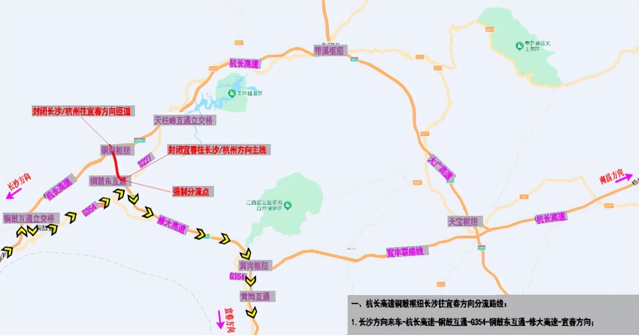 长沙方向来车→杭长高速→铜鼓互通→G354→铜鼓东互通→修大高速→宜春方向。