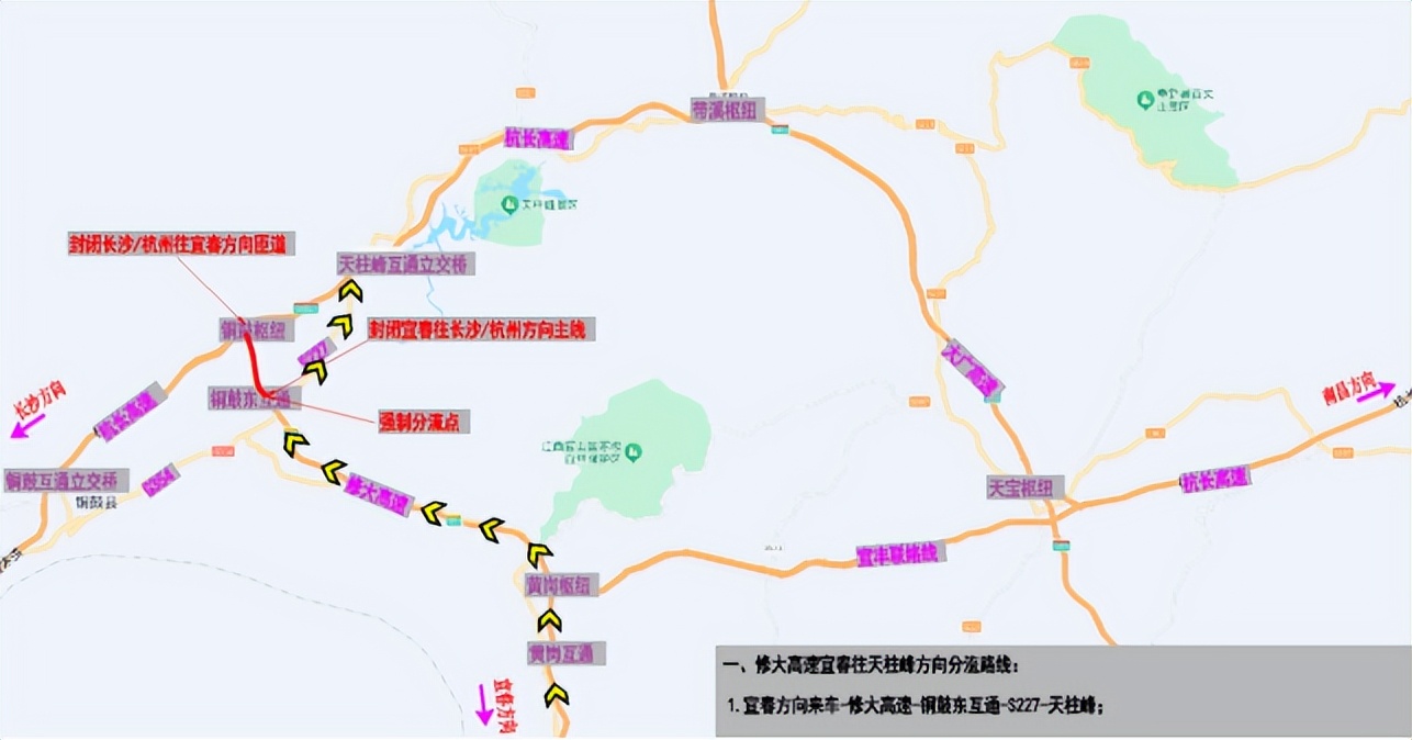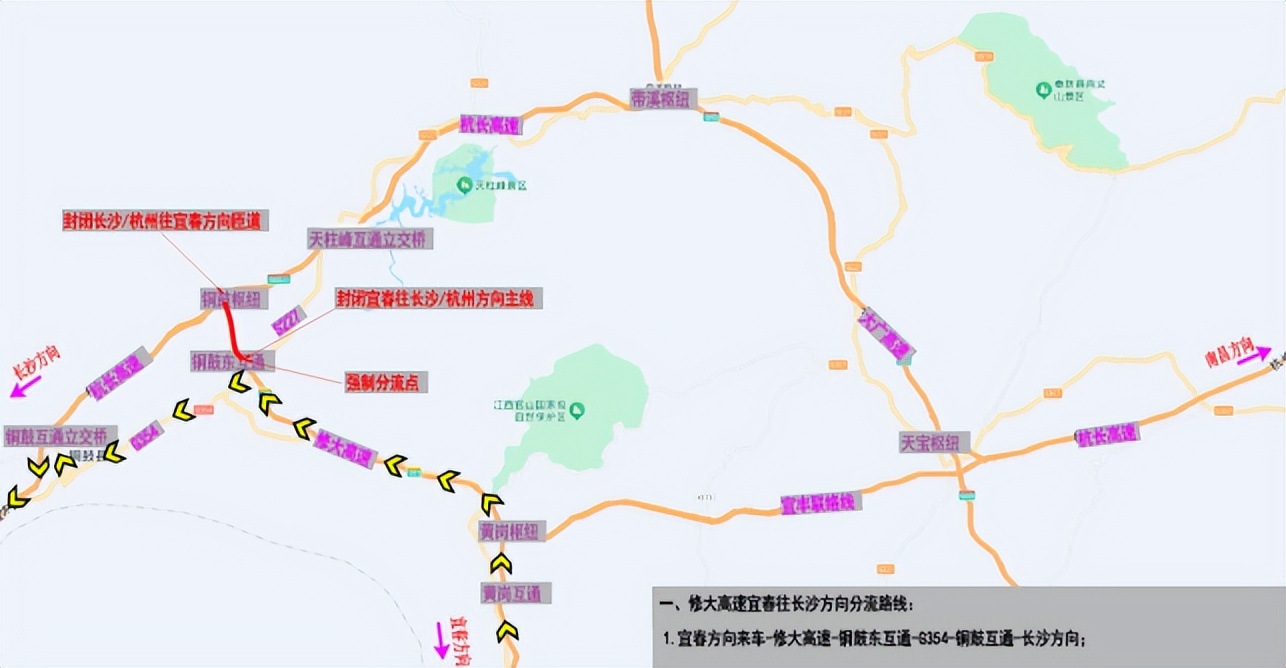 S81修大高速铜鼓东互通宜春往天柱峰方向绕行路线: