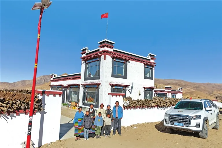 在昂仁县卡嘎镇萨律村,村民扎西加措一家正忙着布置新家。屋内,传统的藏式彩绘已经完成;屋外,新定制的家具正一件件搬入。
