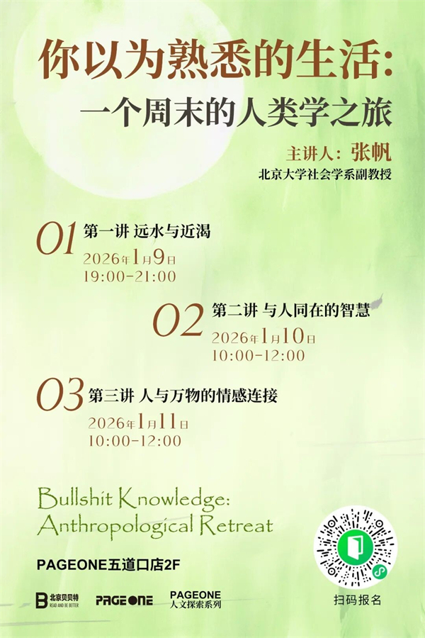 人类学不在于对异域部落的考察和记录,也不在于种种理论、话语和学科规范。作为一个有温度的学科,人类学始终要将人引向一种对生活敏锐、细腻且充满情感的感知方式。北京大学人类学副教授张帆的“你以为熟悉的生活:一个周末的人类学之旅”系列讲座,将用一个周末的时间,与大家赴一场人类学的约会,共同领略人类学的奥义。