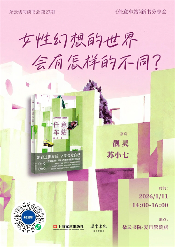 你是否幻想过,生活中有那么一座车站——当现实令人疲惫时,可以推门而入,短暂停靠,甚至换乘到另一种人生?女性科幻作家靓灵,就在她全新的幻想小说集《任意车站》中,构建了这样一处空间。她以细腻的感知与灵动的笔触,编织出一个个浸透女性视角与生命经验的世界样本。1月11日,在朵云书院·复旦管院店,作家靓灵与撰稿人苏小七将一同带领读者走入《任意车站》,聊聊幻想文学如何以天马行空的想象力,成为探讨女性议题的绝佳载体,以及在家庭期待、职场规则与社会目光之间,女性如何积蓄自我认同的力量。