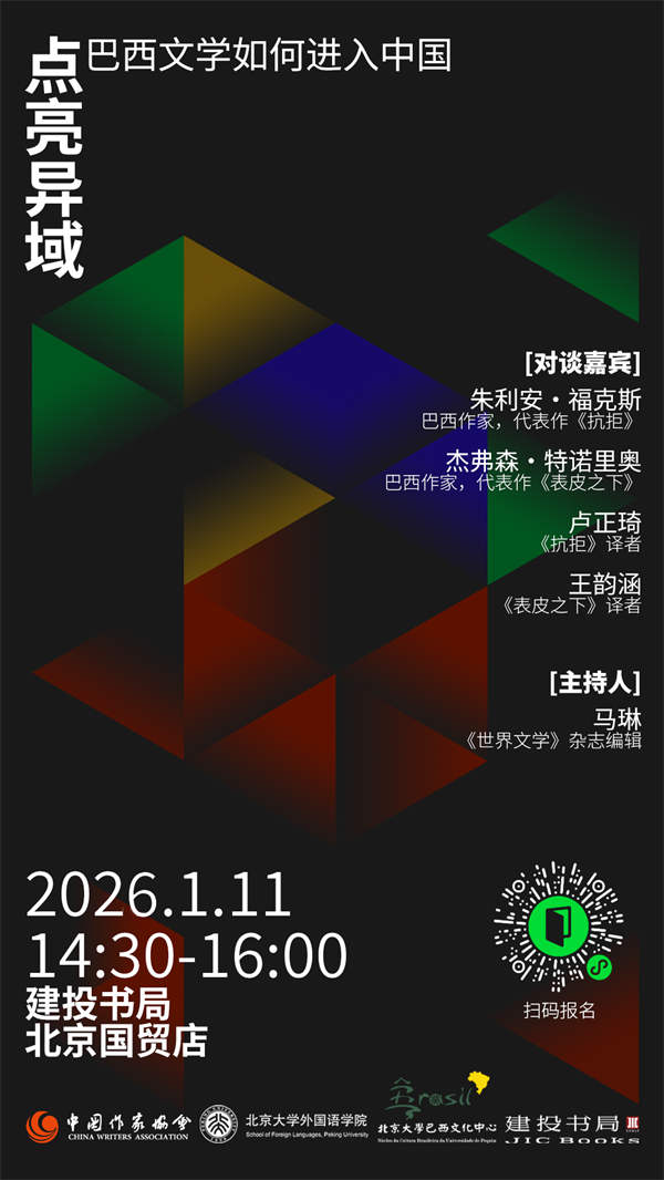 我们如何去理解一个遥远的国度?是通过图片,还是影像,又或是声音?两位巴西作家跨越山海,与年轻的中文译者相遇。这次让我们从语言出发,去到两万公里之外的巴西。1月11日,我们邀请胡利安·福克斯、杰弗森·特诺里奥、卢正琦、王韵涵、马琳,一起探讨如何让一部异域作品在新的语言中保持生命的活力,进而发现巴西与中国并非无法互通的两端,而是可以彼此理解也值得彼此倾听的世界。