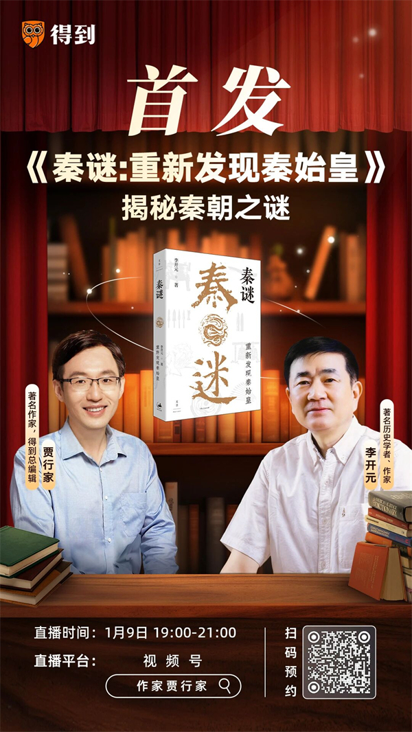 有“史学界福尔摩斯”之称的李开元教授,在研读所有有关秦始皇的史料、主要论著之后,惊奇地发现,秦始皇是一位被严重误读的人物,不仅他个人被误读,秦朝建立前和崩溃后的整个历史背景都被误读了。他融汇史学、考古学、医学以及法学等多学科视角,运用吊线跟踪、混合洗牌等刑侦手法,大胆推测,小心求证,结合对人心的考量,写下了这本还原秦朝历史的著作,堪称历史推理写作的开山之作。1月9日晚,李开元教授将携新版《秦谜:重新发现秦始皇》,和得到总编辑贾行家老师一起直播对话,在历史侦探之旅中解开秦始皇的千年历史谜团。