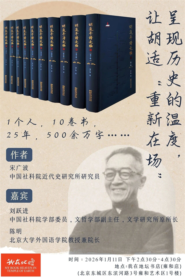 《胡适年谱选编》全面记载胡适生平,详细提供胡适各阶段关键史料。1月11日,该书作者宋广波与刘跃进、陈明两位嘉宾将做客我在地坛书店,与大家分享这套新书。
