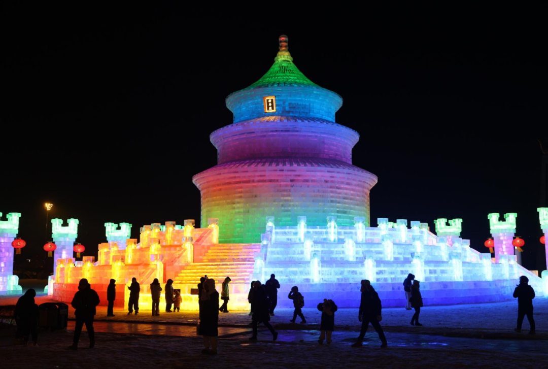 光影与特效交织,让老建筑在冬季的夜色中彻底“苏醒”,实现了历史与现代的惊艳对话。这璀璨的光河,与冰雪新天地的梦幻形成一静一动的光影交响,成为今冬最温暖的城市记忆。
