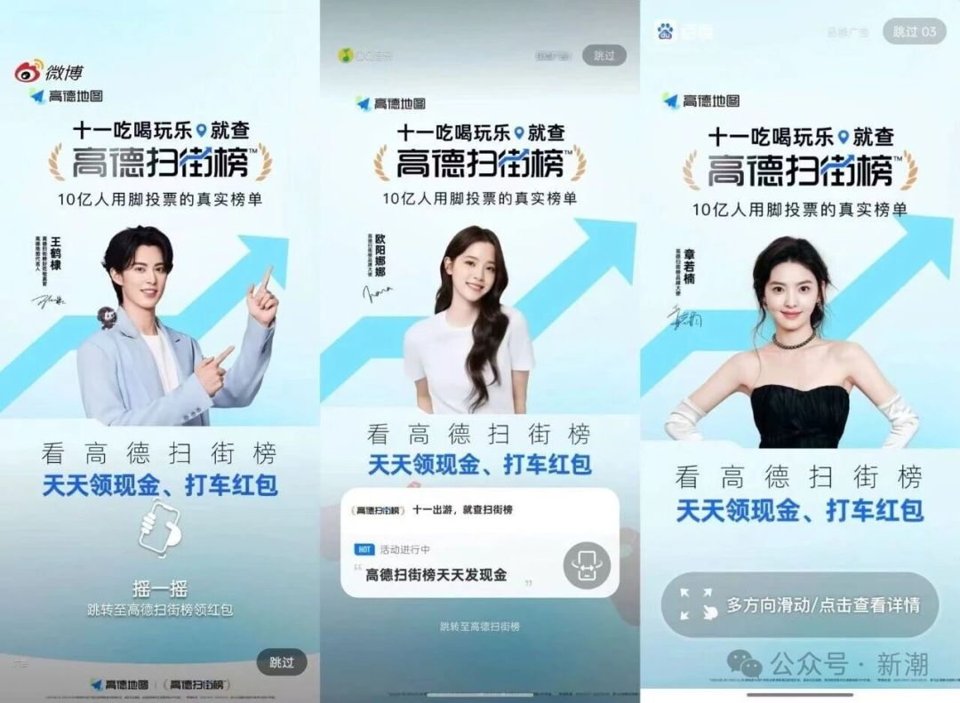 自榜单推出以来,高德不断加大宣传力度。不仅官宣合作多位明星,在百度、QQ音乐、微博等多平台投放开屏广告,还在地铁站、高铁站等地进行大规模线下宣传,并推出邀请新用户、完成扫街任务、写评价赢打车券等奖励机制。