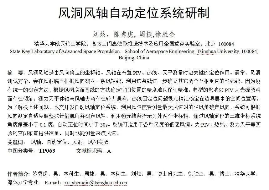 “风洞风轴定位系统”研究中