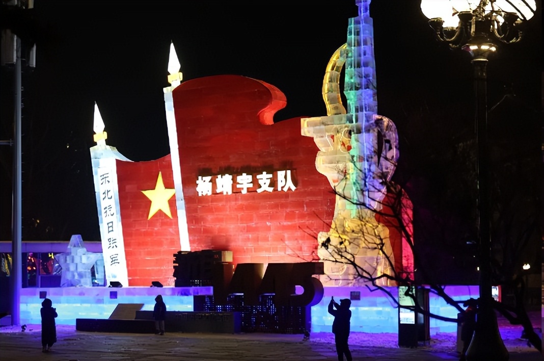 冰雕真的是一年比一年有特色,我比较喜欢杨靖宇队旗这个冰雕,我身后的天坛很壮美。
