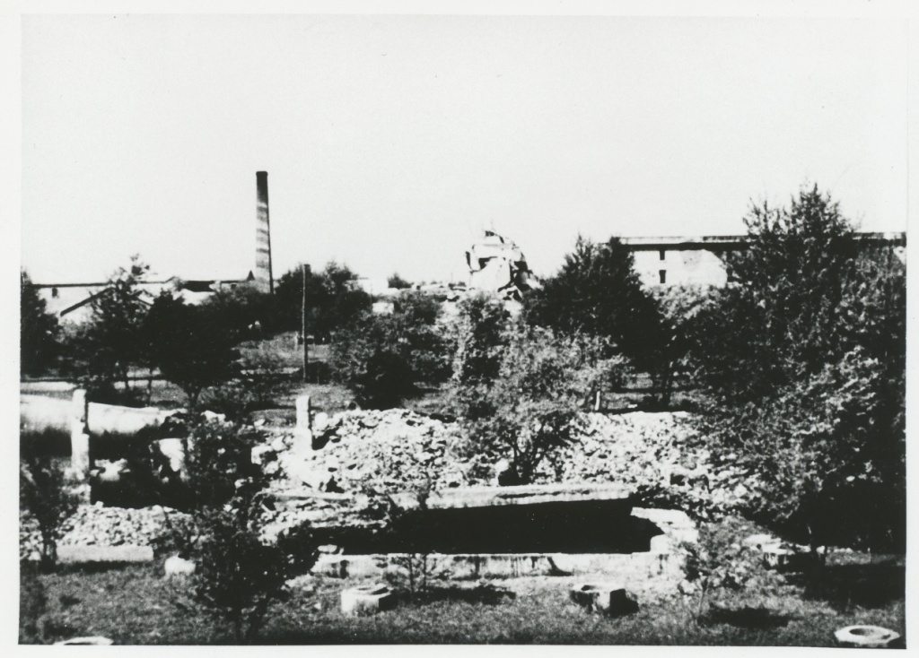 1945年8月9日晚上,下雨,飞机在空中嗡嗡叫,我们看见七三一部队西南角的大草垛着了火,是日本人自己点的。下半夜两点,专用线上开来一列火车,日本家属拼命往车上挤。火车开走后,许多没挤上去的日本妇女在站台上哭泣。三点多钟,轰的一声,四方楼西北角被日本人自己炸塌了。8月10日一整天都听到四方楼连续的爆炸声。