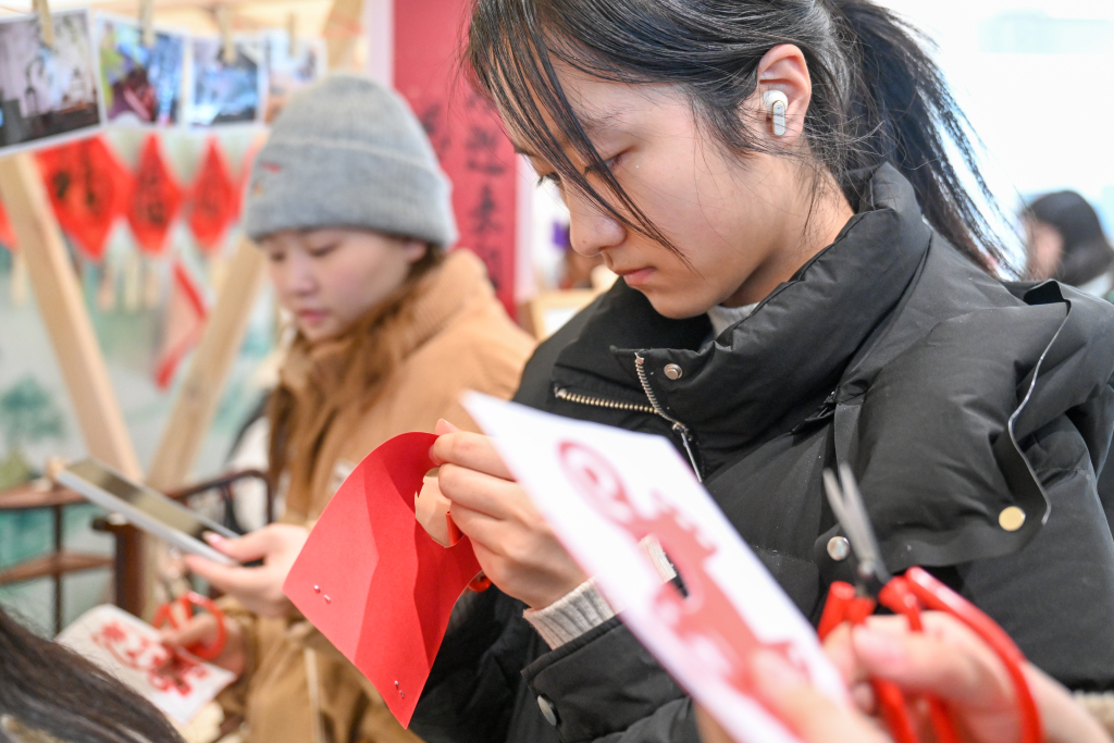 游客在体验剪纸活动。澎湃新闻记者 朱伟辉 图