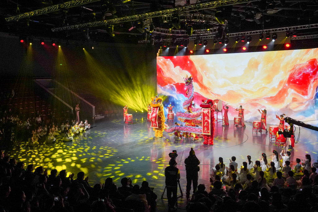 展演在上海绛州鼓乐团和上海三林龙狮队带来的《龙腾狮跃·燃起东方》中拉开序幕。澎湃新闻记者 朱伟辉 图