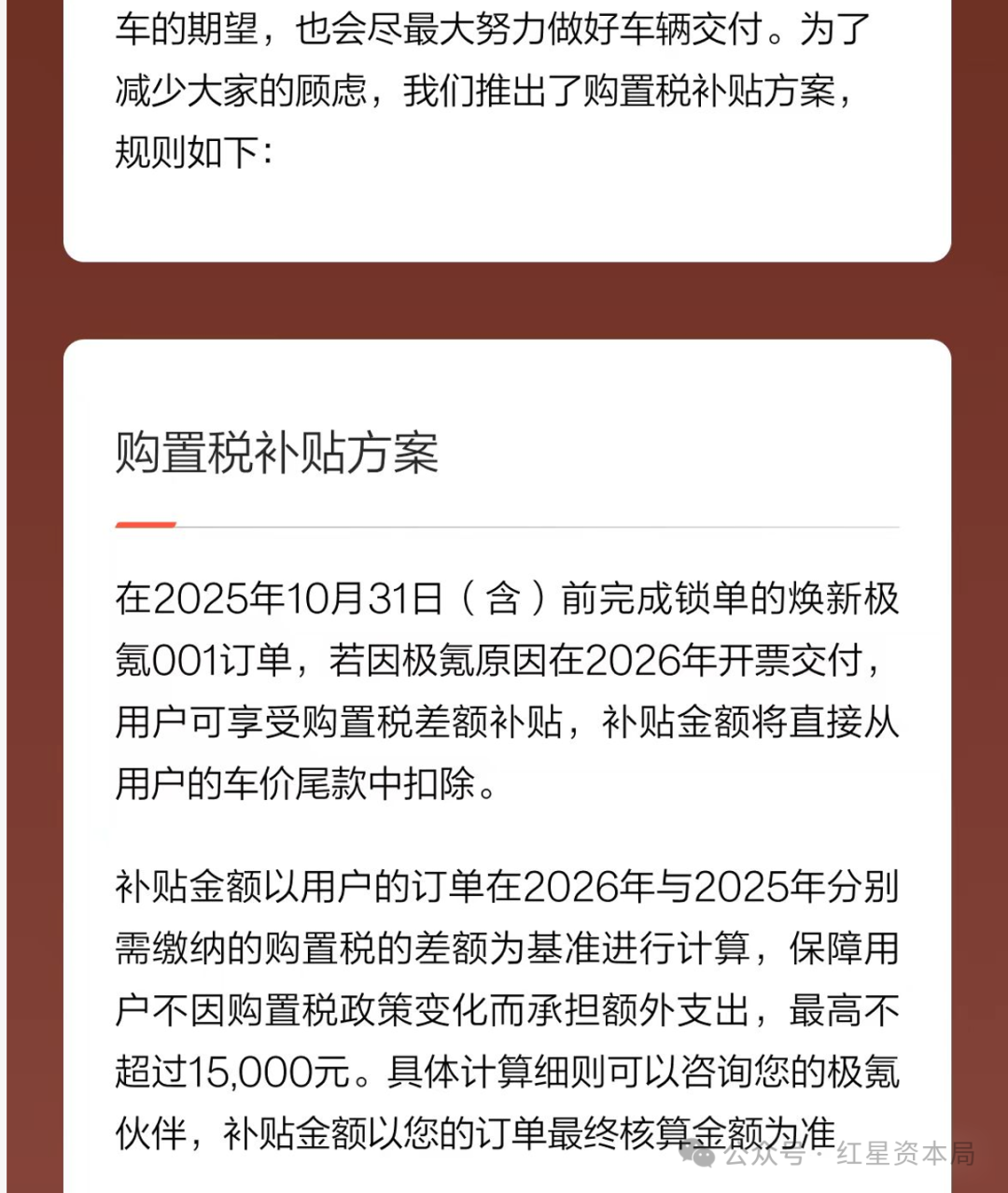 极氪此前公布的购置税补贴“兜底”方案