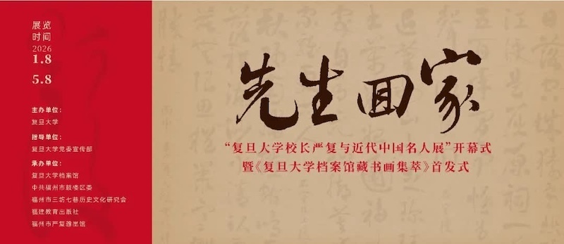 注:此次展览由复旦大学主办,复旦大学档案馆、福州市鼓楼区委、福州市三坊七巷历史文化研究会、福建教育出版社、福州市严复翰墨馆承办。