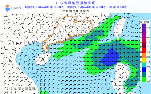 11日,我省中东部海面东北风6~7级阵风8级,粤西海面东北风5~6级阵风7级;