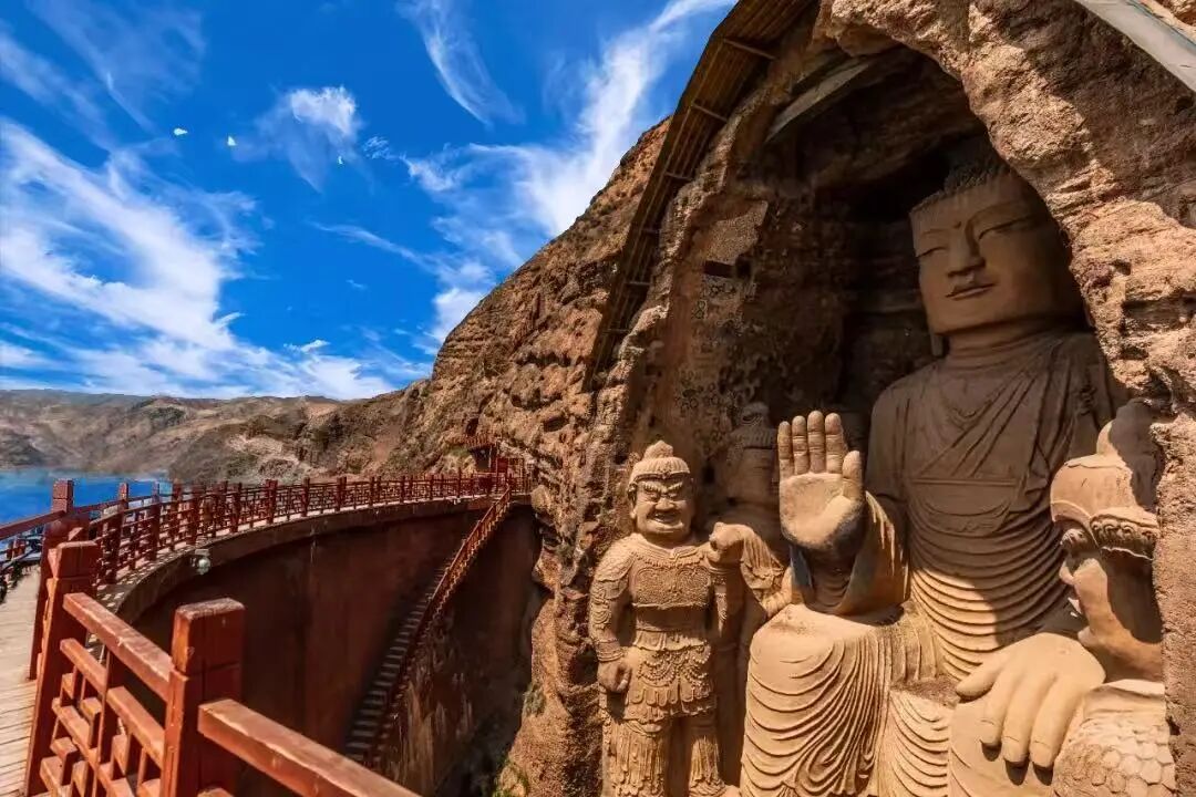 天梯山石窟被誉为“中国石窟鼻祖”,是云冈、龙门石窟的艺术源头。碧波之畔,28米高的大佛依山面水而立,北凉飞天壁画尽显早期佛教艺术的古朴,“天梯积雪”的自然奇景与千年石窟相映成趣,堪称自然与人文的双重瑰宝。