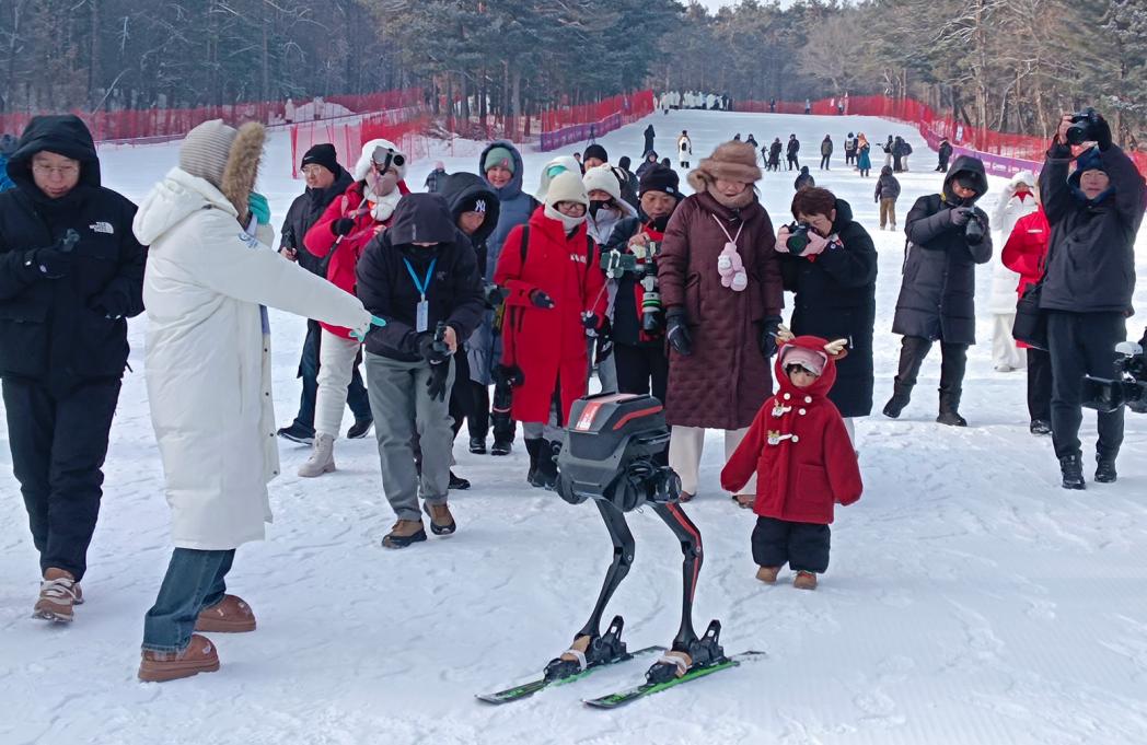 机器人爬犁竞速赛与机器人迷你滑雪赛在望潭广场冰面和滑雪场初级赛道轮番上演。人形机器人在冰面上奋力“滑行”,半身双足机器人在雪道上挑战平衡极限,科技与冰雪运动的结合让游客倍感新鲜。