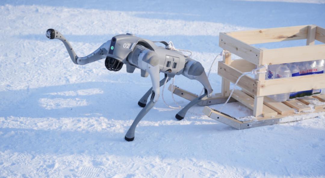 随着ATOM机器人鸣响发令枪,机器人雪橇运输赛在净月潭雪世界率先打响。多足仿生机器人牵引着特制雪橇车,在雪道上精准穿越限宽门、连续绕桩规避障碍,最终完成卸货任务。这不仅是对机器人牵引驱动能力的展示,更体现了其在复杂低温场景下的物流运输应用潜力。