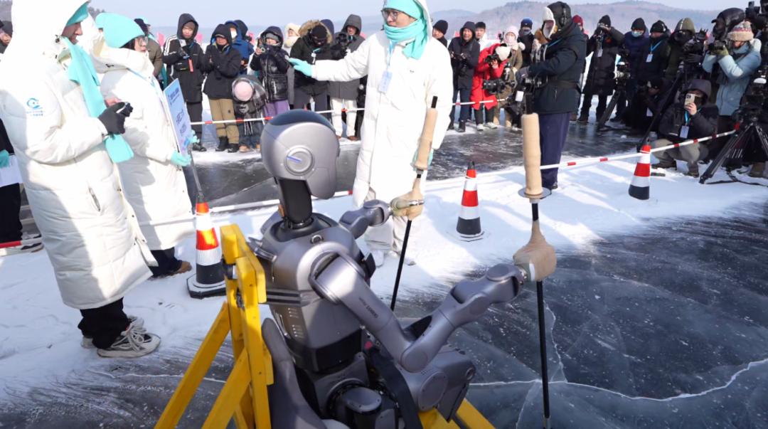 比赛现场,来自吉林大学、东北师范大学等6所高校携手6家企业组成的25支校企联合战队早已严阵以待。他们带来的✅双足人形机器人✅四足机器狗✅协作机械臂等智能设备,在冰天雪地中展开了一场别开生面的“抗压测验”。