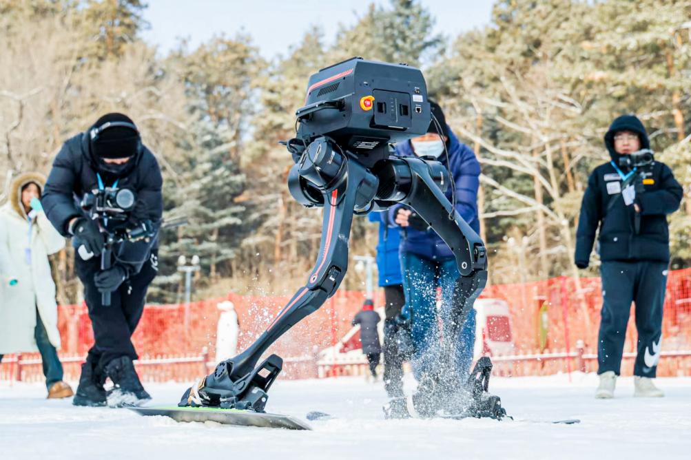 冰雪场景对设备是严苛的考验。-20℃的低温易导致电池续航衰减、关节电机故障,加上雪地摩擦力不均、冰面光滑,对机器人的耐受度、精准控制和稳定性构成了极大挑战。正式比赛前,我们团队和深圳的科技企业共同训练了一个多月的时间,才得以让机器人呈现出赛场上相对灵活、协调的姿态。