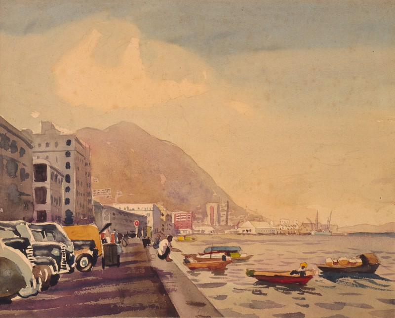 《湾仔》1952,纸本水彩 27 × 36 cm 私人收藏