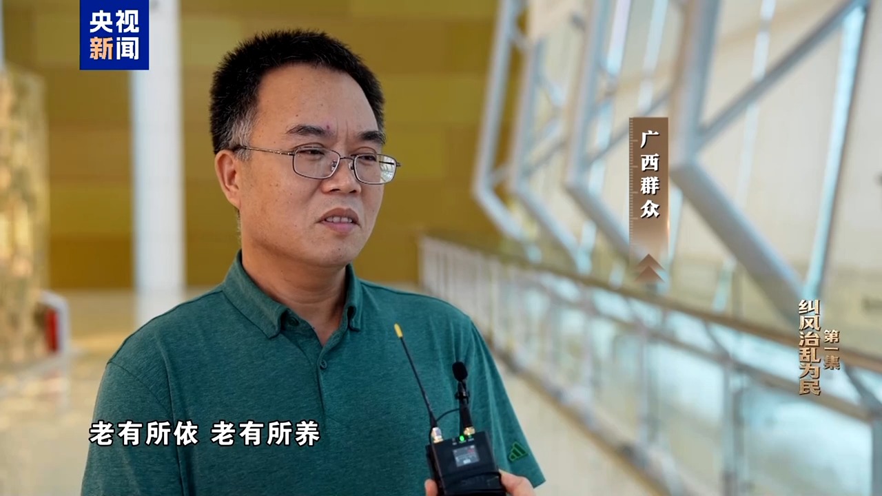 广西群众:反腐力度深入下去,对我们未来的养老的保障,老有所依,老有所养,我觉得很好。