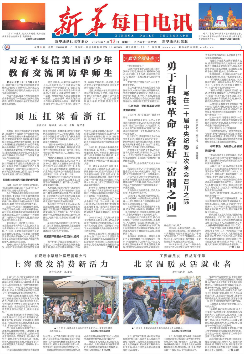 新华每日电讯头版:勇于自我革命,答好“窑洞之问”